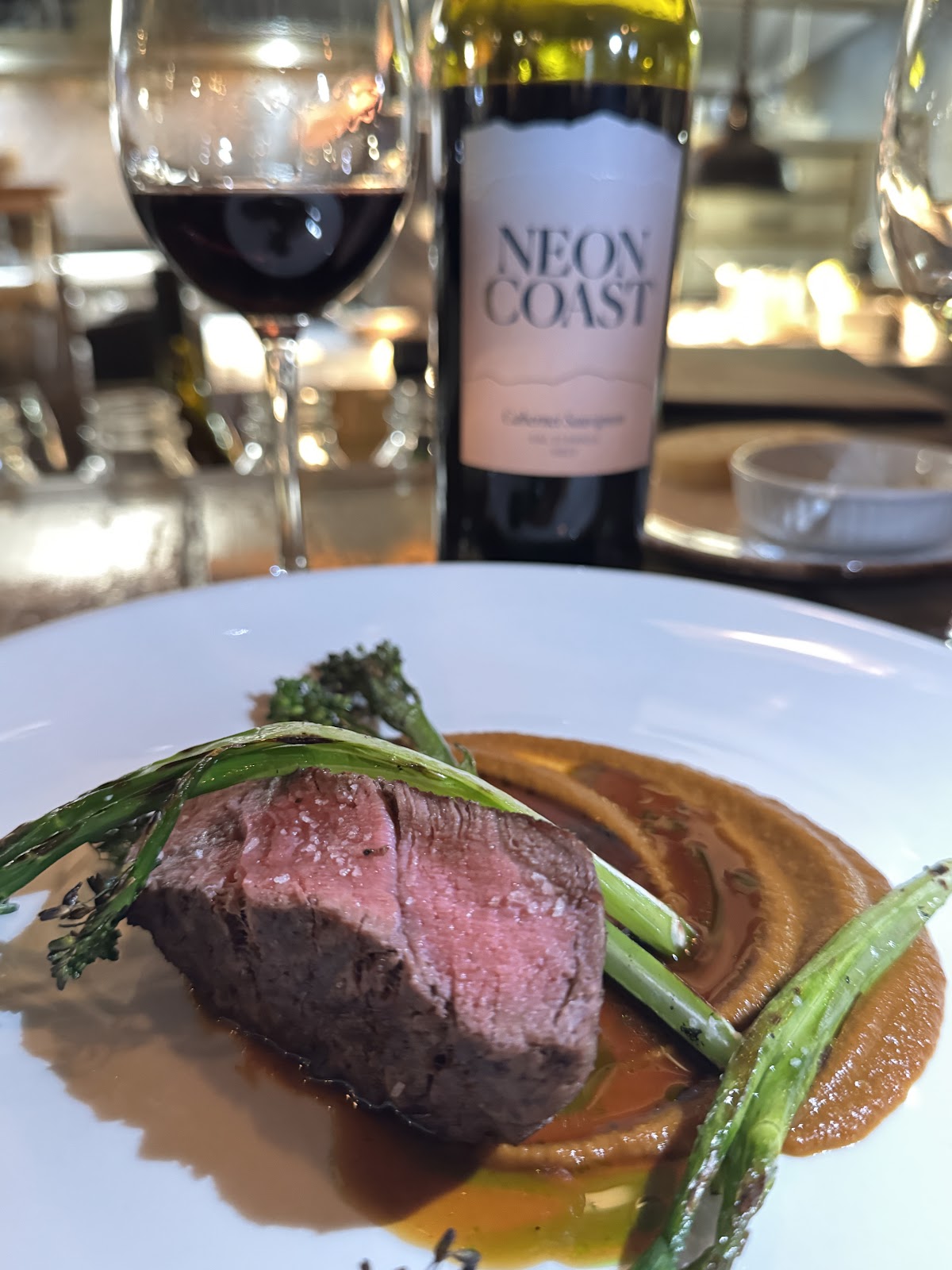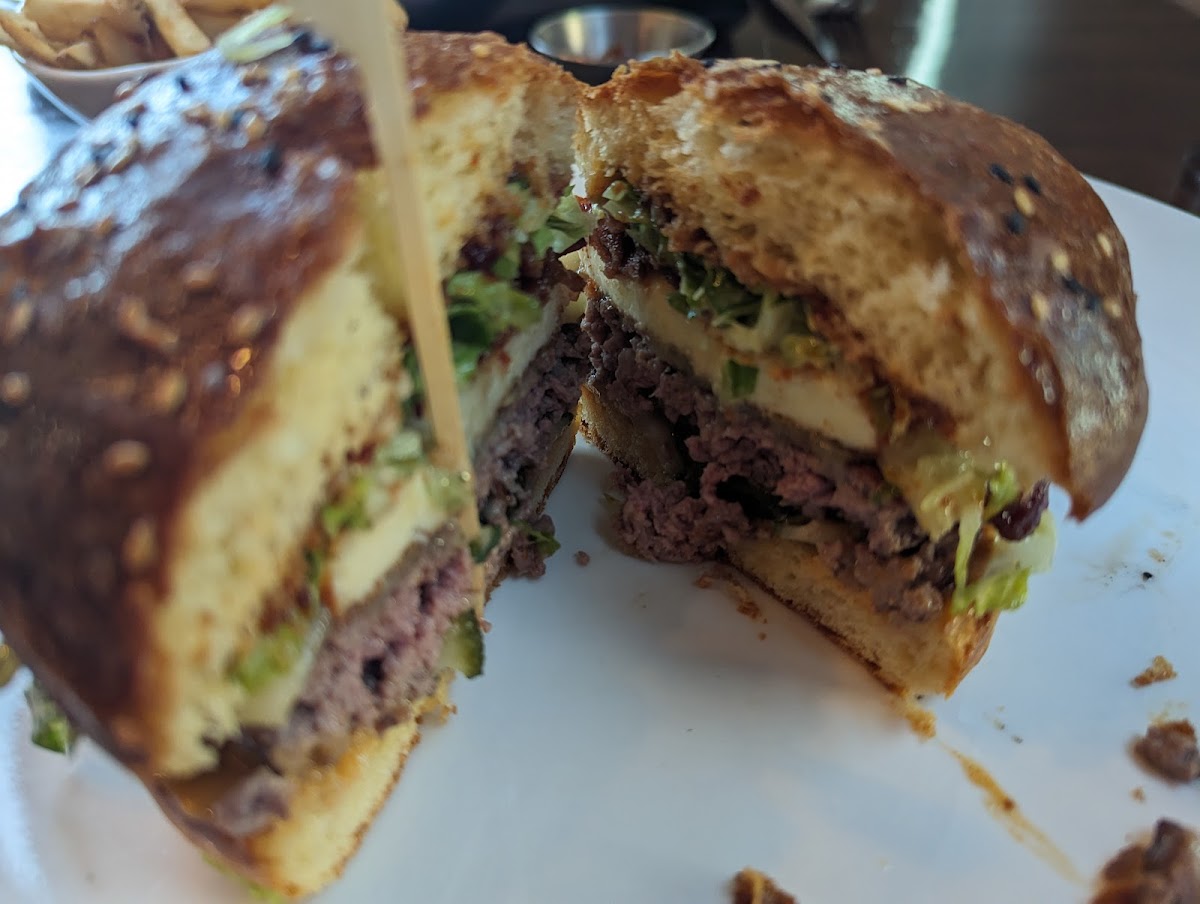 Had a delicious lunch on the patio. Ordered the Fried chicken sandwich and the Buffalo Bowl. Very nice presentation of the meals. The chicken in the sandwich was a bit dry, but the bowl was a big hit with the melange of flavours. Found the food to be priced on the higher end for the serving sizes received. Red wine by the glass was exceptionally pricey. Went with the waiters recommendation for wine and was shocked at the price when we got the bill.