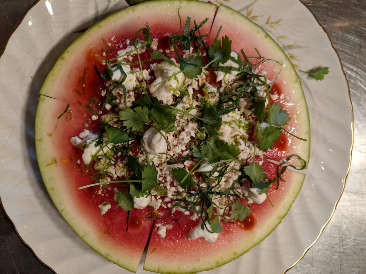 Small plates. Had three: Kobe beef dumplings, shrimp. And Lyonnais potatoes. The dumplings were well seasoned and very tasty. The shrimp dish included a tasty sauce, crispy bread great for dunking and cut tomatoes and onions. A tasty combination. The Lyonnais potatoes were good. We had glasses of Liquidity rose and merlot, which paired well with the dishes. When we arrived we were informed this was the last night and the restaurant was closing. That's too bad for all the staff involved, but they were going out with a bang - a full house made up it seemed mostly of patrons, and us visitors from Ontario. Everybody was in high spirits celebrating the restaurant.